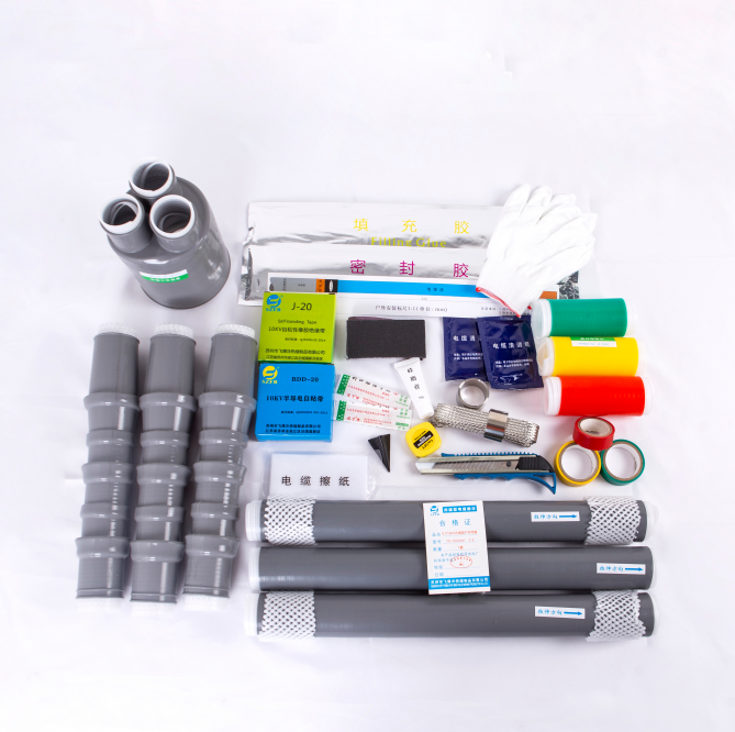 3、終端主體配合冷收縮分支指套、冷收縮絕緣管和冷收縮端子密封管;中間接頭采用三層防水密封工藝、對(duì)附件有著優(yōu)良的密封防潮性能。